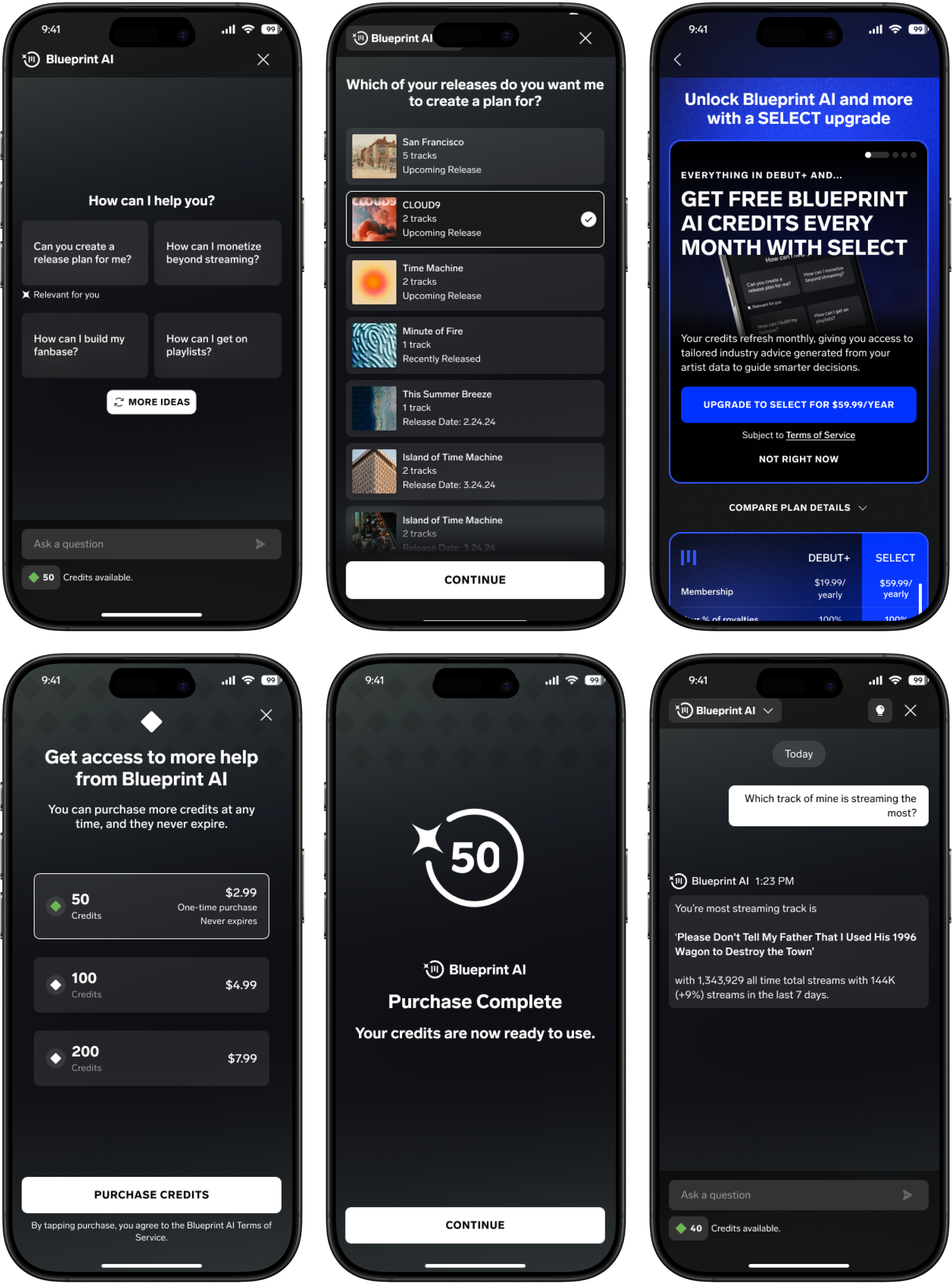 Every prompt was driven by the artist's actual data. Release history, timing signals, and performance patterns shaped responses.